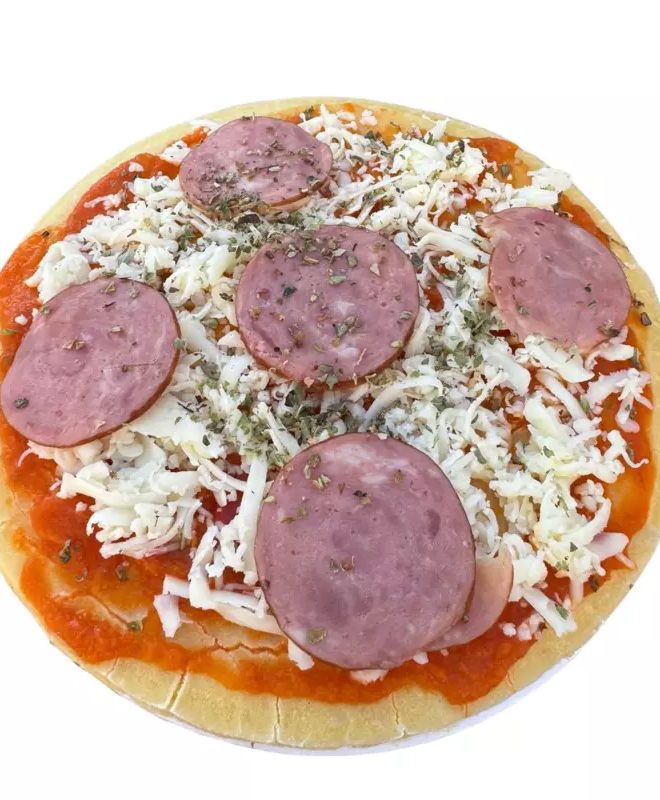 Ingredientes: Farinha de arroz, muçarela, polvilho doce, molho de tomate, calabresa, ovos, fermento, azeite, orégano e sal.